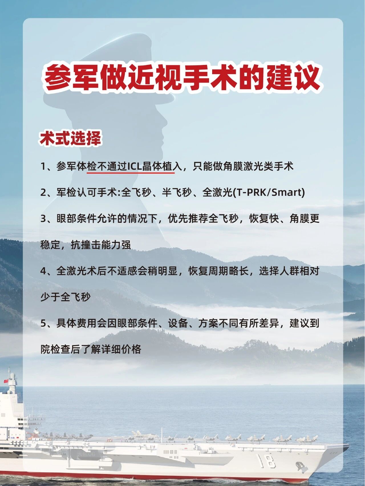 参军做近视手术的建议